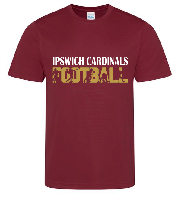 Ipswich Cardinals Football T-Shirt in Black, Grey, Maroon and White